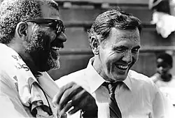 In 1976, Bradley was assigned to cover Jimmy Carter's presidential campaign, as well as the Republican and Democratic national conventions, covering them until 1996.[15] Following Carter's victory, Bradley became CBS's first African American White House correspondent, a position he held from 1976 to 1978.[16] Bradley disliked the position as it tied him to the movements of the president.[3] Also in 1976, Bradley began anchoring the Sunday night broadcasts of the CBS Evening News, holding the post until 1981.[17] In 1978, he became one of the principal correspondents for the documentary program CBS Reports, also leaving in 1981.[18]