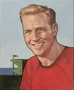 2. ^ a b 1950 Bowman football trading card #106 for Ed Carr ("In 3 years with 49ers has won acclaim as one of pro football's outstanding backs. Adept at pass interceptions. Unlike most pro fofootball players, Ed never went to college. Received most valuable player award, Valley Forge Military Academy, 1945. In high school won 3 letters in football, 3 in baseball (catcher), 1 in basketball (guard).")