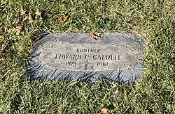 On June 18, 1961, the unemployed Gaedel, who had just turned 36, was at a bowling alley in Chicago, his birthplace and hometown. Gaedel was followed home and beaten. His mother discovered him lying dead in his bed. He had bruises about his knees and on the left side of his face.[23] A coroner's inquest determined that he also had a heart attack. Bob Cain, who had pitched to Gaedel, was the only Major League Baseball figure to attend the funeral, despite the fact that the two never formally met.[24] Gaedel was interred at Saint Mary Catholic Cemetery and Mausoleum in Cook County, Illinois. His tombstone indicates that his family name may actually have been Gaedele, not Gaedel.[25]