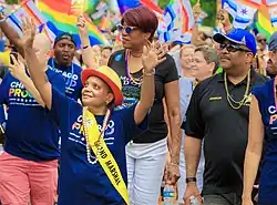 Johnson defied collaborating with the U.S. Federal government's efforts to round-up illegal immigrants as a sanctuary city, embroiling Johnson with newly elected President Donald Trump.[14] Trump in turn traded words with Johnson, who criticised Chicago officials over their mishandling of the city's high crime rate. In October 2019, Johnson refused to attend a speech by Trump at the International Association of Chiefs of Police that took place in Chicago, a move supported by Mayor Lori Lightfoot.[14] Trump called Johnson's absence a "disgrace."[22] Johnson called Trump's words frivolous and stated that he "would not attend the conference while racial insults and hatred are cast from the Oval Office."[14] Mayor Lori Lightfoot said, "Superintendent Johnson showed President Trump what true leadership and character look like."[14]