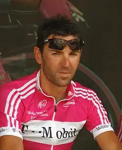 He currently lives in Almenno San Bartolomeo, Italy. Mazzoleni is a talented climber and was a higher finisher on the General Classification in the 2005 Tour de France, notably he finished 3rd on stage 16 to Pau. He also finished 3rd overall in the 2007 Giro d'Italia behind 1st-place winner Danilo Di Luca and 2nd place Andy Schleck. His brother in-law is Ivan Basso. Mazzoleni left Astana on 16 July 2007, following implication in the Italian Oil for Drugs case.[1] On 8 April 2008 Mazzoleni was given a two-year suspension due to his involvement in this case.[2]