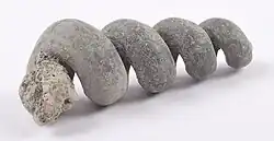 The specific layer in which the fossils are located is known as marl, a dark to light green, manganese-rich, clay that forms when algae, aquatic plants, and aquatic animals decay over a long period in hard-water streams rich in calcium carbonate.[7] This layer is typically located in swamps, resulting in a covering of a dark organic-rich layer of peat. Because of marl's formation as the result of decaying plants and algae in soft sediment, it is a great harborer of fossils including numerous invertebrates as well as larger land-dwelling animals whose bodies were swept downstream and laid here to rest.