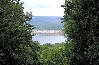 ![]() View of Center Hill Dam from visitor center observation tower in 2008 | |