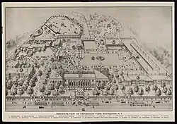 Perhaps the greatest social progress came through neighborhood's approach to the Western House of Refuge, which was relocated out of Edgerton after a state investigation found the purported "school" was a "money-making" operation that was "exceedingly repulsive" in its punishment and torture of children.[27] The prison was replaced physically by what would be known as Edgerton Park, named for the mayor who purchased the land on which it was built. By the 1910s, the 40-acre park contained Rochester's premiere exhibition grounds, first public library, and first municipal museum.[28] On an institutional level, the House was replaced by Vocational schools that were "the first of [their] kind in the country" and a local branch of the YMCA.[29] These advances, as one resident wrote, proved Edgerton was a "stronghold of good government."[30]