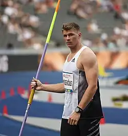 Edis Matusevičius (born 30 June 1996) is a Lithuanian athlete specialising in the javelin throw. He has competed at multiple major championships, including the 2020 and 2024 Olympic Games.[2]