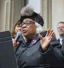 ![]() Edith Savage-Jennings speaking in the 2017 Women's March in Trenton, New Jersey | |