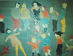 In the late 1940s and early 1950s she participated in duo and trio shows held by an artists' collective called the Pyramid Group.[21] The artists in that group were mostly young and unknown and mostly associated with the Ashby Gallery.[26] In addition to Schloss members included Cicely Aikman, Helen DeMott, Hyde Solomon, Paul Breslin, Al Blaustein, and Gordon Rothenberg.[27][28] In 1949 an ARTnews critic drew attention to a painting of hers called "Between the World and the Weather" in a Pyramid Group show at the Riverside Museum, describing it as "a lyric abstraction".[29] A 1955 duo exhibition that Schloss held with another Pyramid artist at the Hudson Guild drew favorable comments from a critic for Art Digest. Calling her work "simply and beautifully executed", the critic discussed elements of her style including its "feminine quality" and "delicate but firm handling".[30]