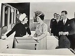Edith Smith was appointed matron to Westminster Hospital London in 1915 and retired in 1947.[3] She was notable for her leadership in the civil nursing service through the World War 1 and World War II, receiving in recognition the Royal Red Cross (second class) in 1918 [4] and Officer of the British Empire award in 1943.[5] [6] The re-development of the Westminster Hospital incorporated a larger nurses' home and training school for nurses.[7] Smith, with other officials welcomed the Prince of Wales, later the Duke of Windsor to lay the foundation stone to the nurses' home,[3] and Queen Mary, mother of King George VI to open the new training school, named in her honour.[8] She was the first president of the Westminster Hospital League of Nurses[9]