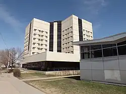 The original 12-storey Edmonton Remand Centre was built in 1979. The facility was located in downtown Edmonton and cost $138.0 million in 1979.[6][7] The original set capacity was 388; however, the facility population grew to 800 in early 2012. The original facility closed in April 2013.[2][8] Demolition began in June 2023, and is expected to be completed by 2025.[9][10][11][12]