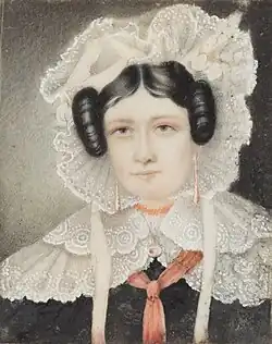 Receiving his ticket of leave in 1843, Edgar was conditionally pardoned in 1844, and from then on he seems to have focused on painting portrait miniatures, many of his subjects being emancipists (ex-convicts) and their children. While he is known to have established a studio in Argyle Street, in The Rocks, little else has been confirmed about the final decade of Edgar's life. He ended up destitute and a resident of the Sydney Benevolent Asylum, where he died on 21 June 1854.[2] Decades later, Samuel Elyard, one of his former pupil's at Gilcrist's academy, remembered Edgar as a man of "kind disposition" who was "glad to impart a knowledge of Art to anyone who had a taste for it",[3] and who "painted miniatures very nicely, and had he kept steadily to his profession, would perhaps have been an eminent artist".[2]