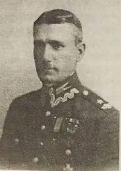 He participated in the Polish-Bolshevik War, during which he was wounded near the river Daugava on 5 September 1919. He was appointed the Poruchik on 1 May 1920. For his deeds of war in the ranks of the 1st Regiment of Light Cavalry, he received the Order of Military Virtue or the Virtuti Militari.[4]