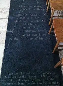- ^ "This marble and the Inscription were placed here by the direction of Bishop Keen who in his will expressly forbad any other monument being erected to his memory."