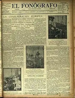 The newspapers's policy in favor of the Allies resulted in economic imbalance for "El Fonógrafo" because most of its advertisements, that came from Maracaibo German import and trading firms, began to be withdrawn. Government pressure on the newspaper became more and more intense but Eduardo López Bustamante did not change El Fonógrafo's editorial line.[4]