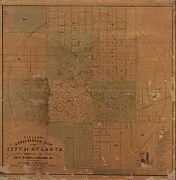On February 16, 1853, the Atlanta city council approved Vincent's proposal to produce a map of that city.[5] It was completed by November 18, 1853, because the city council resolved that copies should be sent to the mayors of Georgia's other major cities.[6]