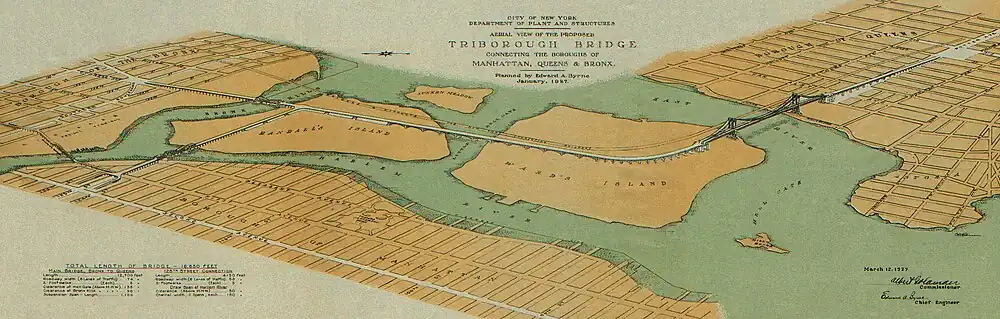 Aerial View of the Proposed Triborough Bridge - Planned by Edward A. Byrne - January, 1927