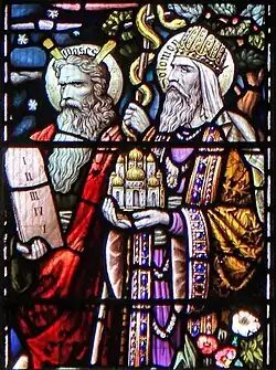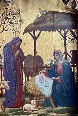 Another important collaboration between Prynne and George Fellowes Prynne was at St Peter's Church, Staines, where the artist provided vibrant and complex window designs of remarkable quality and beauty for his brother's new church.[20] The windows, created from the 1890s onwards, are considered to constitute one of Prynne's finest legacies.[21] In 1903, his design for the Staines Nativity Window was displayed at the Royal Academy 135th Exhibition.[22][23]