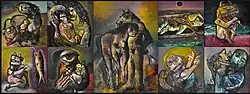 The artist was part of the group of 15≤ https://renaissancesociety.org/exhibitions/160/group-of-15-of-st-louis/≥ exhibiting alongside fellow modernists such as E. Oscar Thalinger and Werner Drewes. In 1956, Boccia began his multi-panel paintings, which were purchased after completion, among others, by Morton D. May between 1956 and 1977.[10][11][12][13][14][15] Some of his most noteworthy series of multi-paneled paintings consist of up to nine panels. Other paintings remained hidden in his studio for over fifty years and were uncovered recently by a research project led by the late artist's trust.[16][17][18] Boccia's work shows the influence of Max Beckmann, and he was well aware of the older artist's work through May's collection.[19]