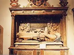 Sir Edward became ill again the following year and died in February 1583. His lands in Hampshire, Dorset, and Wiltshire passed to his brother George. He was buried in March in Carisbroke church. His alabaster and marble monument with effigy survives in St Thomas's Church, Newport, with his arms displayed above.