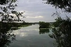 Edward Medard Park and Preserve, originally known as Pleasant Grove Reservoir Park, is located south of Plant City, Florida, on Turkey Creek Road in Hillsborough County, Florida. The 1,284-acre (5.20 km2) park just north of Durant, Florida was the site of phosphate mining in the 1960s by the American Cyanamid Company, before the land was donated (largely in 1969). A dike and 770-acre (3.1 km2) reservoir were created in 1970 to provide flood protection along the Alafia River. The lake has a very extensive and irregular shoreline, and great variation is found in the lake bottom as well. The park is maintained by the Hillsborough County Parks and Recreation Department, and has camping, picknicking, and other facilities. Three long piers offer the ability to launch fairly large vessels, although the lake has a no-wake restriction.[3] Additional opportunities for various sports and aquatic activities are available at the popular spot which attracts approximately 250,000 visitors a year.[4]