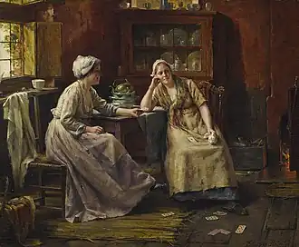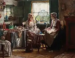 Genre scenes were his speciality, with an occasional portrait or seascape. Much of his inspiration came from the fishing communities in Zeeland. Many of his works are a series of similar interior scenes, created according to the wishes of his agents, Albert D'Huyvetter and Guillaume Campo (1880–1952). These generally consist of a room with a sunny window, occupied by women in traditional costume, engaged in some daily activity. These paintings were very popular, selling throughout Europe and the United States.
