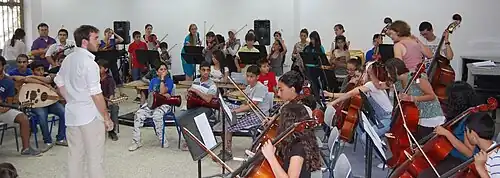 The ESNCM administrates the Palestine Youth Orchestra and the Palestine National Orchestra, in addition to a number smaller projects. The recently formed Palestine Strings ensemble performed with Nigel Kennedy in 2012, and toured the US in 2011. Its youth orchestra - the PYO - has performed in Palestine, Italy, Jordan, Greece, Bahrain, Germany, Syria and Lebanon. It enjoys the support of international partner institutions including the Oslo Philharmonic Orchestra. The ESNCM's professional orchestra - the PNO - formed in December 2010, has performed in Palestine, Jordan and Indonesia. Both orchestras have an agenda of promoting music by living Arab composers. The ESNCM Orchestra, the only Palestinian symphony orchestra performing in Palestine today where all the musicians are drawn from the local communities, promotes concerts throughout the year in the main Palestinian towns and cities. It performs an eclectic mix of film western classical music, opera, arrangements of Arabic music, and film music. The ESNCM has several resident Arabic music ensembles, student and professional, which have toured throughout the world, and its students have taken part in collaborative projects with well-known international musicians.