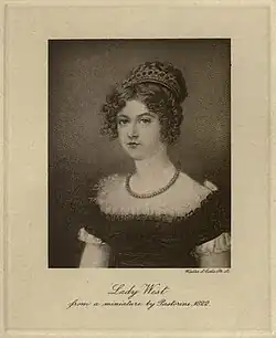 Edward West married Lucretia Ffolkes, daughter of his guardian uncle, on 26 August 1822 at Marylebone Church.[4] She came from a political family, and earlier in the year had been campaigning for her brother Sir William ffolkes, 2nd Baronet, after the death of their father had caused a by-election.[7]