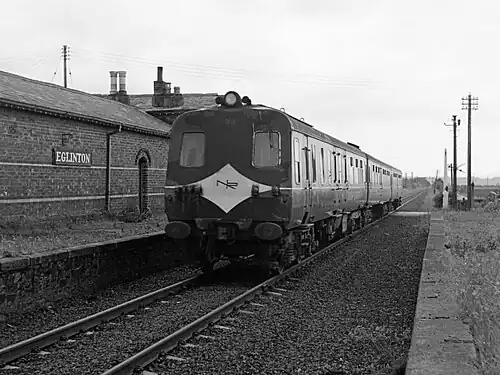 ![]() NIR 80 Class train passing through Eglinton station in 1979 | |||||||