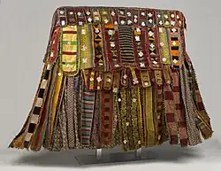 Cloth plays an important role in the world of the Yoruba. Their beliefs equate nakedness with infancy, insanity, or the lack of social responsibility.[7] More elaborate dress reflects social power and prestige. In performances honoring ancestors, exquisite cloth is the major medium for the masker's transformation. An Egungun costume is composed of multiple layers of cloth lappets made from expensive and prestigious textiles, expressing the wealth and status of a family as well as the power of the ancestor.