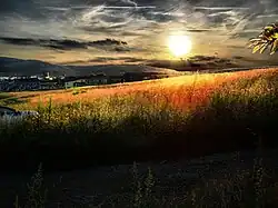 The Ehrenberg is a hill to the east of Ilmenau, rising to a height of 528 metres and standing opposite the Tragberg. The border between Ilmenau and Langewiesen runs over its summit, which is marked by a large wooden cross. It is home to part of the campus of the Technische Universität Ilmenau (Technical University of Ilmenau) and the Bundesanstalt für Wasserbau (Federal Institute for Hydraulic Engineering). On 22 July 2006, around 6,000 square metres of the Ehrenberg were destroyed in a forest fire, although damage to buildings was limited. The body of the Ehrenberg itself is notable geologically for containing hydrobiotite, sometimes also called voigtite.[1]