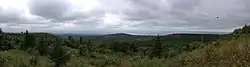 Originally used as winter hunting grounds by the Mi’kmaq people, Eigg Mountain was settled and farmed in the early nineteenth century by immigrants from Ireland and the Scottish Highlands.[1] The place takes its name from the Isle of Eigg in western Scotland where some of the first settlers originated.[2] Farming conditions were difficult at this high elevation.[3] Winters were longer and the snow-cover deeper than in lowland areas.[4] The soil was rocky and thin.[5] Crop failures were reported in the 1890s.[6] The school was closed in 1914. The entire settlement was abandoned shortly thereafter. The history of Eigg Mountain settlement is documented on an interactive online map.