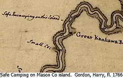 The map is a clip from Harry Gordon's map (c. 1766) showing the "Indian Trade" safe camp site when on the main canoe route.
