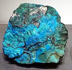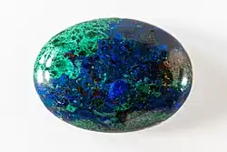 Eilat Stone (Hebrew: אבן אילת) or eilatstone is a gemstone that derives its name from the city of Eilat in Israel, located near where it was once mined.[1] It is characterized by a green-blue heterogeneous mixture of several secondary copper minerals, including malachite, azurite, turquoise, pseudomalachite, and chrysocolla.[2] Eilatstone is the national stone of Israel,[3] and is also known as the King Solomon stone.[1]