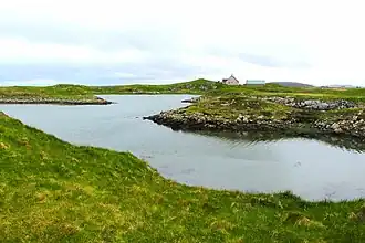 Along the main causeway to the north is the uninhabited islet of Garbh-eilean, which is in turn connected to the islet of Eilean Leathann by a small causeway that branches off the main road to the west. Heading south on the A865 the causeway leads to Grimsay.[4]