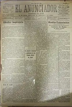 El Anunciador was a Spanish language newspaper that was published in the then Crown colony (now British overseas territory) of Gibraltar between 1885 and 1940.[1] It was the most read newspaper in Gibraltar and in the Campo de Gibraltar.[1]