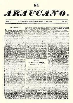 El Araucano (The Araucanian) was a biweekly newspaper published in Santiago, Chile from 1830 to 1877. Inspired by Interior Minister Diego Portales, it was an initiative of the conservative government to publish its laws and decrees.[1] Due to government support, it never had funding problems.