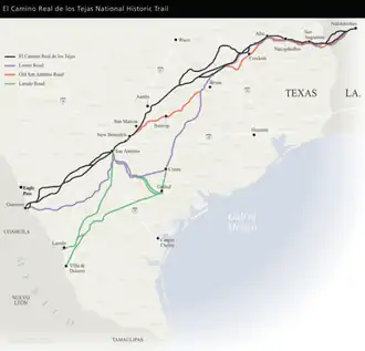 3. ^ "El Camino Real de los Tejas National Historic Trail" (PDF). Texas Department of Transportation. Retrieved 16 August 2017.