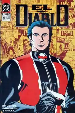 Rafael Sandoval was the second iteration created in 1989 by writer Gerard Jones and artist Mike Parobeck as a title set in the modern DC Universe. This title lasted 16 months. As created by Jones and Parobeck, Sandoval is a rookie member of the city council of Dos Rios, Texas, who creates his version of El Diablo (from a festival costume and an old boxing persona and local legends surrounding the Devil) after being stymied by officials while trying to pursue the case of a serial arsonist.[1] Subsequent efforts involved battles with illicit drug smugglers using maquiladora covers for their activities, a hunt for a serial killer, conflicts with human-smuggling operations, and Sandoval's conscience over how to serve the people of Dos Rios.
