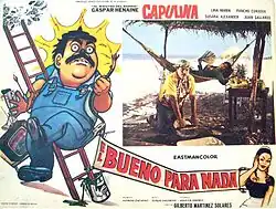 El bueno para nada ("The Good for Nothing") is a 1973 Mexican comedy film directed by Gilberto Martínez Solares, produced by Miguel Zacarías[1] y starring Gaspar Henaine "Capulina", Lina Marín, Susana Alexander and Ivonne Govea are also featured.