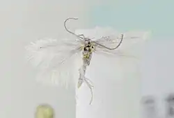 The wingspan is about 7 millimetres (0.28 in).[2][3] Adults are on wing from June to July.