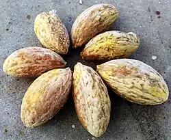 The Karbi people of Karbi Anglong District, Assam, harvest both ripe and unripe fruit from August to October, the ripe fruit is made into a pickle, the taste of the fruit is sour.[8] Both ripe and unripe fruit are also sold in local markets, in the years 2005-2007 they fetched Rs. 20/- to 30/- per kilogram (cheap, but not in the cheapest price range).