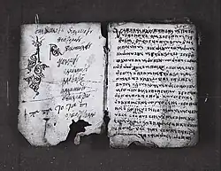 The Elbasan Gospel Manuscript is an 18th-century collection of translations from the New Testament into Albanian.[1] Although the author is mainly known as the Anonymous of Elbasan (Albanian: Anonimi i Elbasanit), according to Mahir Domi and Robert Elsie the linguistic and historical evidences indicate to be the work of Gregory of Durrës.[2] On the cover's verso with the same ink as the text, something has been written in a different script, which has been interpreted by a historian as ‘Theodoros Bogomilos / Papa Totasi’, although this tentative interpretation isn't universally accepted.[1] For this reason the work is sometimes attributed to Totasi as the owner, if not the creator of the manuscript.[3][4][5][6][7]
