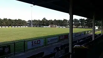 The main grandstand, which is situated between the clubrooms and the pitch, seats about 200 people. The total capacity of the facility is much larger, with an abundance of standing room all around the main pitch.