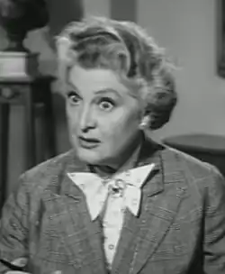 Audley's first television appearance was in the pilot episode of The Mickey Rooney Show as Bessie Frost, a terrible actress who stars in a series called The Trials and Tribulations of Auntie Julia on the fictional IBC network where Mickey Mulligan works as a page. From 1954 to 1970, she appeared regularly on television, including episodes of: The People's Choice; I Love Lucy; Crossroads; Perry Mason (in two appearances as different characters); The Real McCoys; Richard Diamond, Private Detective; The Twilight Zone; Dennis the Menace; Mr. Lucky; The Tab Hunter Show; Pete and Gladys; and Hazel (in four appearances as different characters). Audley had recurring roles on The Dick Van Dyke Show as the P.T.A head Mrs. Billings, on The Beverly Hillbillies as the school headmistress Mrs. Potts, on Mister Ed as Wilbur Post's aunt Martha, on Pistols 'n' Petticoats as Mrs. Teaseley,[10] on My Three Sons as Mrs. Vincent, and on Green Acres as Oliver Douglas's disapproving mother, Eunice Douglas, despite being only five months older than actor Eddie Albert who played the role of her son.[11]