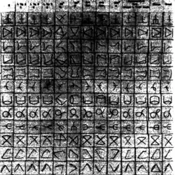 Eleanor Gibson performed a study to examine how young children discriminate between different "letter-like forms".[11] The children used in the study were between ages 4 and 8 years old.[11] The children were given 13 standard letter-like forms in a column on the left-hand side of the page to examine.[11] Several variations in each letter-like form, termed transformations, were given along the rows.[11] The transformations were either slight changes in appearance by altering the lines in the form ("topological transformation" and "line-to-curve transformation") or a change in the perspective of the letter ("rotational-reversal transformation" and "perspective transformation") while keeping the form identical.[11] The task given to the children was to determine and indicate which transformations were no different from the standard forms.[11] Overall, as age increased, the amount of incorrect differentiations made decreased.[11] However, this varied depending on the level of difficulty of the transformations.[11] The results demonstrated that the 4 to 5 year olds had great difficulties with all variations of the forms whereas the 6 to 8 year olds performed much better and were able to discriminate between the standard letter-like forms and the variations shown.[11] The following list is ordered from the transformations that had the largest decrease in errors (largest improvement) to the smallest (least improvement), as age increased: rotational-reversal, line-to-curve, perspective, topological.[11] These results contribute to the research on perceptual learning in that they suggest that children learn distinctive characteristics to be used for differentiation which is a large component of the identification of letters.[11]