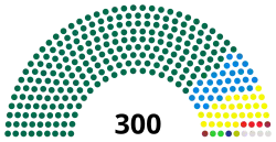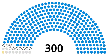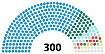 The Parliament of Bangladesh (Jatiya Sangsad) consists of 350 members elected to five-year terms. Of that number, 300 are elected in single-member territorial constituencies according to the first-past-the-post electoral system. The remaining 50 seats are reserved for women, and are filled on the basis of proportional representation by a vote of the 300 members. The number of reserved seats has been revised over the years, increasing from 30 to 45 under the 8th parliament and 45 to 50 under the 9th parliament.[1]