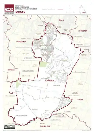 Jordan is an electoral district of the Legislative Assembly in the Australian state of Queensland. It was created in the 2017 redistribution. It was named after politician Vi Jordan, second female Member of the Queensland Legislative Assembly.[1]