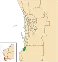 The proposed 2011 redistribution would have seen Mandurah transferred to the South Metropolitan region. It would have absorbed the outer southern Perth suburbs of Golden Bay and Singleton, while the more rural suburbs of Barragup and Furnissdale would have shifted to Murray-Wellington.[1] However, the final boundaries left Mandurah in the South West region.[2] Barragup and Furnissdale would be transferred into Murray-Wellington in the 2019 redistribution while regaining part of Dudley Park.