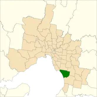 ![]() Location of Mordialloc (dark green) in Greater Melbourne | |