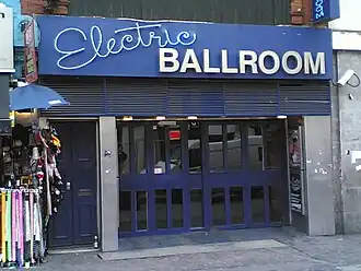 The Electric Ballroom started as an Irish ballroom in the 1930s, renamed as Electric Ballroom in the summer of 1978 and owned by Bill Fuller, up until his death in 2008, aged 91.[5][6] It hosts various events.[7][8][3]