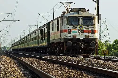 ![]() Lallaguda based WAP-7 hauling MGR Chennai Central-Hazrat Nizamuddin Garib Rath Express skipping Odela railway station. | |